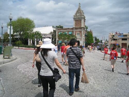 最初にシュレックを見たあとは、そのまま奥の方へぶらぶらと。なんせパスがあると思っているので、そんなに急いで はしることもありません(^^) パスに払ったお金が5000円とかなら、元を取るために 走ってたかもしれないけど(^^) 町並みはこんな感じ、日本よ…